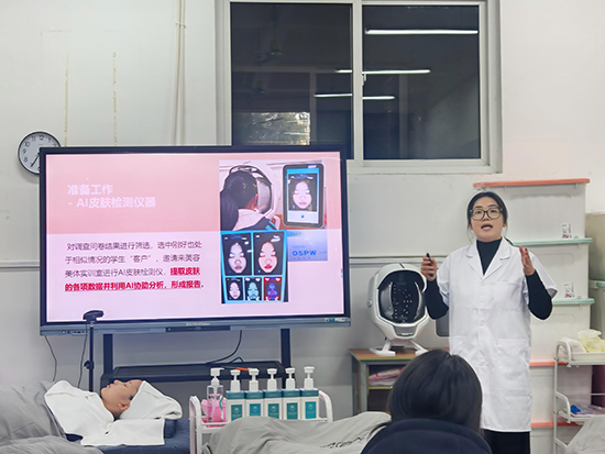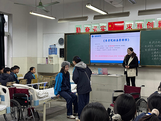 人文健康系關注素養與照護,曹韻、高娜娜兩位老師分別從傳統山水畫技法與養老照護實操入手,實現審美教育與人文關懷的雙重育人目標。