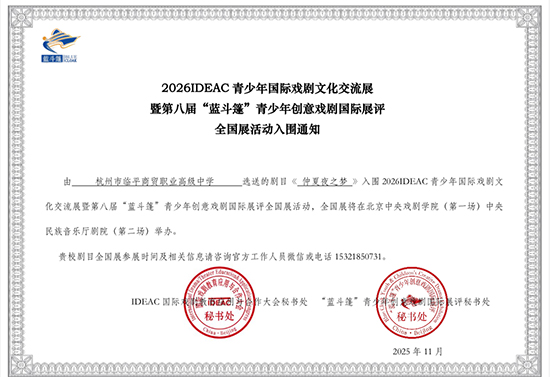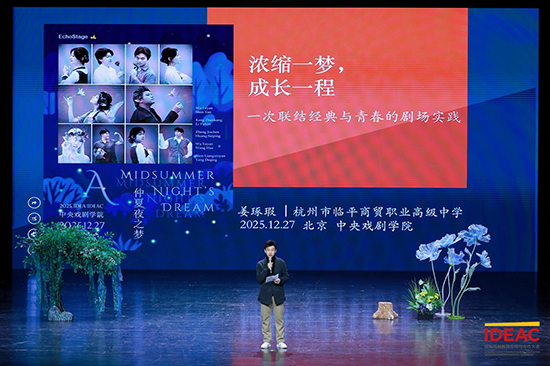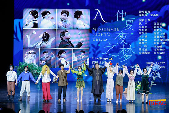 2025年12月25日至28日,浙江開放大學臨平學院EchoStage英語戲劇社的十位學生演員在指導教師姜琢瑕、童小琴老師的帶領下遠赴北京,參加IDEAC青少年國際戲劇文化交流展暨第八屆“藍斗篷”青少年創意戲劇國際展評,在中央戲劇學院主劇場演繹了由團隊改編的莎士比亞經典作品《仲夏夜之夢》。