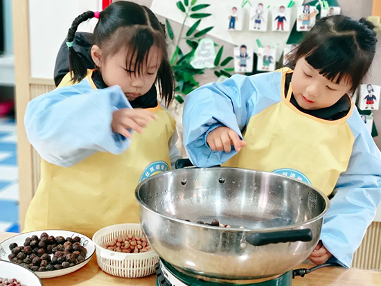 小寒時節,喝臘八粥是流傳已久的民俗傳統。幼兒園農場組的孩子們開展了“暖心臘八粥”食育活動。活動伊始,老師借助PPT,向孩子們介紹了紅棗、薏米、花生、糯米等臘八粥食材,講解了臘八食俗的歷史淵源,讓孩子們直觀感知傳統飲食文化的深厚底蘊。隨后,孩子們親手清洗食材、參與熬煮,不一會兒,一碗碗熱氣騰騰的臘八粥便新鮮出爐。孩子們品嘗著香甜軟糯的粥品,臉上洋溢著幸福的笑容。此次食育體驗,讓孩子們在感受節氣美食的同時,懂得了感恩與珍惜,在暖胃暖心的氛圍中體悟到濃濃的民俗溫情。