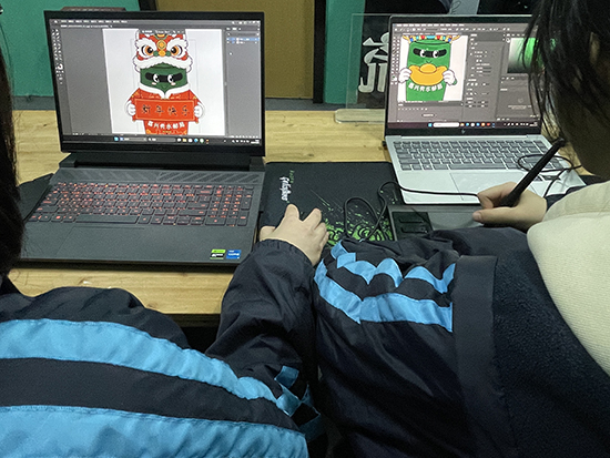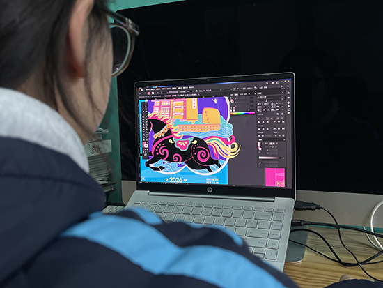 這些可愛作品的背后,是一群創意爆棚的學生和十足給力的指導老師。從草圖構思到作品呈現,從靜態到動圖,學生團隊在專業教師與校企合作單位漫品文化設計師的“雙師”陪伴下,完成了一次從理論到實戰的跨越。“把傳統‘年味’變成可以發送的表情,這個過程本身就像一場魔法。”藝術設計與制作專業的林佳潔同學笑著分享。