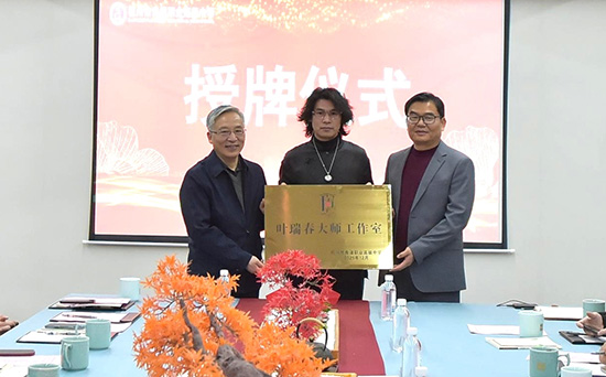 隨后,現場舉行了隆重的“葉瑞春大師工作室”揭牌儀式。浙江省文物保護利用協會楊建武會長與賀建誼書記共同為工作室揭幕,象征著一座連接行業大師與職教學子的技藝傳承橋梁正式落成。