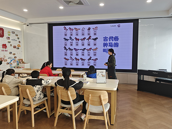 “甲骨文里的馬兒正在奔跑呢!”隨著金城花園居民王瑩巧的生動講解,大屏幕上躍動的象形文字瞬間點燃課堂。孩子們驚喜地發現,三千年前的“馬”字鬃毛飛揚、四蹄生風,簡練線條中流淌著動態美感。通過拆解“駿”“駒”等漢字,傳統馬文化在趣味解讀中煥發新生,每個字形都化作一幅濃縮的古人觀察筆記。