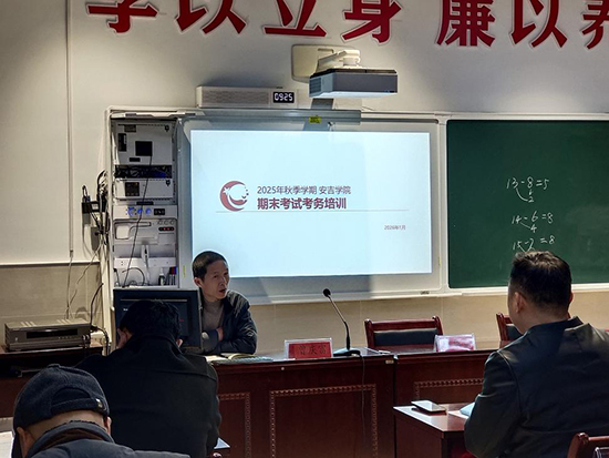 教務(wù)處副主任梅徐就期末考試監(jiān)考工作對全體教師進(jìn)行了考前培訓(xùn),對監(jiān)考工作流程、監(jiān)考人員職責(zé)、考試違紀(jì)處理,特別是對考生人臉識別的操作進(jìn)行了重點(diǎn)培訓(xùn)。學(xué)院黨支部委員曾慶富對考務(wù)和監(jiān)考工作中容易出現(xiàn)的問題和注意事項(xiàng)進(jìn)行了強(qiáng)調(diào)。