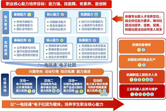1.能力建構目標:構建以社團活動和展示為載體的職業核心能力培養路徑,通過社團招新、作品展示、產品展銷、知識競賽、教學比賽等活動,系統性提升學生的溝通合作、信息處理、創新解難、自我管理及自主學習等關鍵能力。