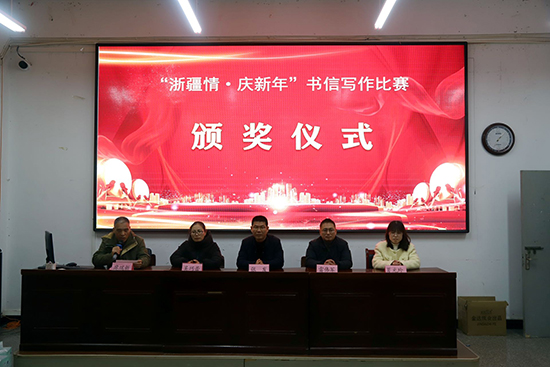 1月15日晚上,浙江省慶元縣職業(yè)高級(jí)中學(xué)階梯教室洋溢著溫馨熱烈的氛圍,“浙疆情,慶新年”兩校書信寫作比賽頒獎(jiǎng)儀式在此隆重舉行。中國(guó)郵政慶元分公司總經(jīng)理雷偉軍、慶元職高校長(zhǎng)張發(fā)等嘉賓出席儀式并為獲獎(jiǎng)?wù)哳C獎(jiǎng)。