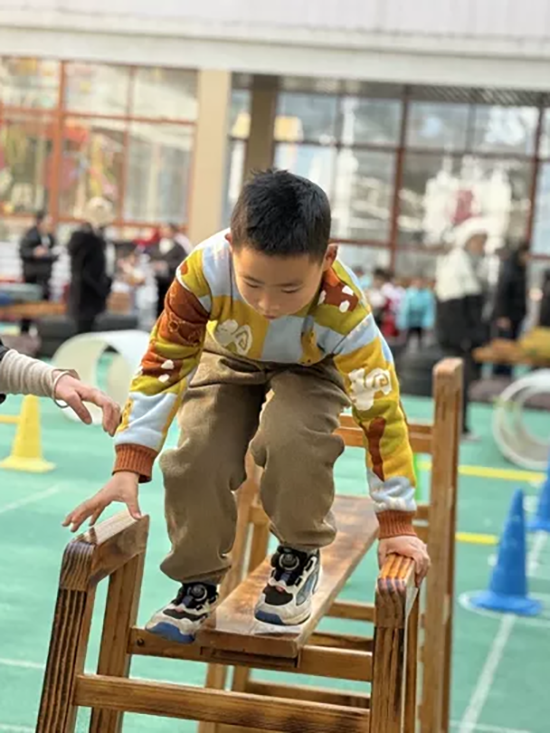 熱場表演落下帷幕,各項比賽輪番登場。大班的“‘繩’采飛揚”跳繩比賽中,小選手們手握跳繩快速躍動,繩影翻飛間,是速度與耐力的比拼,更是成長與突破的見證,賽場紀錄被一次次刷新;中班的“爭分奪秒”拍球挑戰賽火熱開啟,一分鐘內,籃球在孩子們手中上下翻飛,專注的眼神、穩健的節奏,展現著協調能力與堅持精神;小班的“極速賽跑”充滿童趣,15米的賽道上,萌娃們奮力沖刺,每一步奔跑都凝聚著勇氣,每一次抵達都洋溢著喜悅。幼兒團體賽“超級障礙賽”更是將活動推向高潮,比賽結合幼兒園“原色動動動”特色項目,融合跑、跳、攀、鉆等多種動作,孩子們相互協作、奮勇闖關,在鍛煉肢體協調性與靈活性的同時,也深深體會到了集體榮譽感與團隊合作的意義。