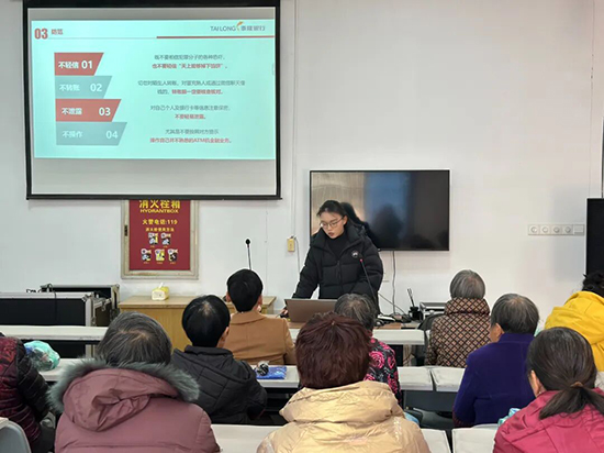金融反詐環節,泰隆銀行工作人員結合“冒充公檢法”“虛假養老投資”“保健品詐騙”等高發案例,用通俗語言拆解騙局套路,詳解“三不一及時”防詐原則。現場互動問答中,居民們分享可疑情況、咨詢困惑,工作人員逐一答疑,引導大家守好“養老錢”,參與居民紛紛點贊“內容實用又好懂”。