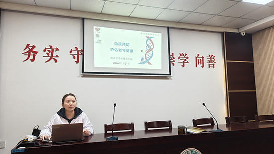 活動現場暖意融融,洛舍鎮衛生院醫生以疫苗是老年人的健康隱形盾牌為核心,結合冬季傳染病高發特點,用通俗易懂的語言拆解專業醫學知識。針對老年人免疫功能減弱、易受病原體侵襲的生理特性,醫生重點講解了流感疫苗、肺炎球菌疫苗、帶狀皰疹疫苗等重點疫苗的接種意義、適用人群與接種程序,明確了每年接種流感疫苗50歲以上可接種帶狀皰疹疫苗等關鍵知識點,還通過真實案例對比,直觀展現了疫苗接種在降低重癥風險、減少醫療負擔中的重要作用。