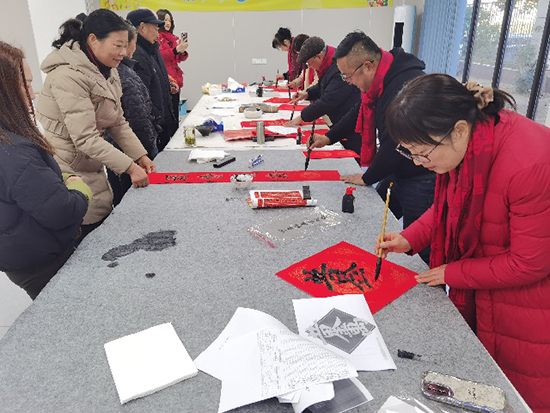 1月23日上午,安吉社區教育學院遞鋪分院教室內暖意融融、墨香四溢,一場主題為“學在成校樂享人生 喜迎新春福到萬家”的寫春聯送祝福活動在此溫馨啟幕。活動特別邀請了王連生、潘虹、周亞等書法造詣深厚的老師現場揮毫,學校校長何吉豐、副校長黃雙誼與邱立美、蔣惠翔等老師全程參與,與來自遞鋪街道各個村鎮、社區的50余位市民共同迎接新春的到來。?