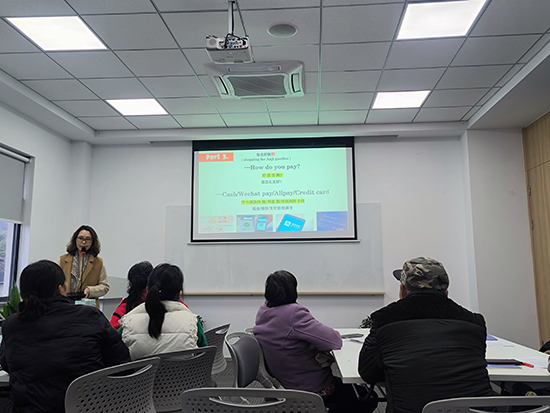 1月26日,天荒坪鎮余村文化禮堂內氣氛熱烈,安吉社區教育學院天荒坪分院(天荒坪成校)“大余村共富課堂——余村英語角夜校”2026年第一期培訓活動在此拉開帷幕。浙江育英職業技術學院旅游管理專業外國語言文學副教授葛秀華受邀主講,為近20名村民及商戶帶來了一場實用又生動的英語“充電”課。