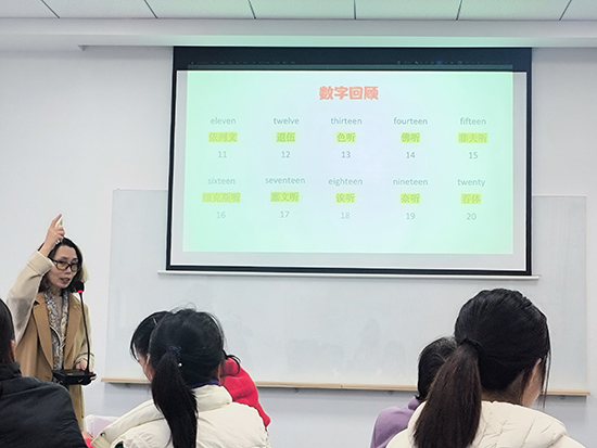 課程伊始,葛秀華副教授以“英語數字”為切入點,通過快速問答、情景對話等方式帶領學員回顧上節課內容,幫助大家鞏固英文數詞的發音與用法。“從‘one’到‘one hundred’,這些數字在日常交易、游客接待中太實用了!”余村商戶王大姐邊記筆記邊感慨。
