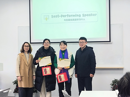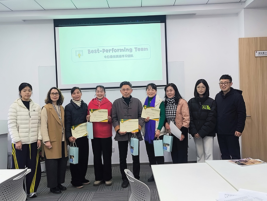 為提升學習趣味性,活動設置了“單詞接龍”“你畫我猜”等游戲環節,村民們分組競賽,笑聲與掌聲此起彼伏。同時,來自天荒坪成校的志愿者全程跟班輔導,針對基礎薄弱的學員進行“一對一”糾音,確保每位參與者都能跟上節奏。“老師講得細致,志愿者也很有耐心,以前不敢開口說英語,現在能簡單交流了!”剛獲得“今日最佳團隊”成員的村民李大哥舉著榮譽證書笑道。