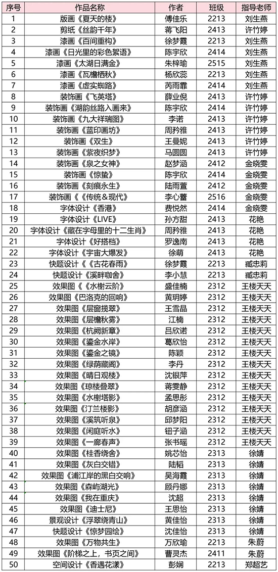 這次展覽是工藝美術專業部技能節的收官之作,前期還組織了素描、平面構成、圖案圖形創作、快題表現及動漫手繪五個賽項,分別于12月24日、25日舉行,覆蓋高一至高三全部班級。比賽內容對標省級技能大賽模塊,突出基礎能力與創意表達,切實做到“以賽促學、以賽促教”。