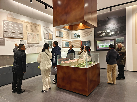 交流團先后參觀了法治文化主題館、枕碧書屋、枕碧碑廊等核心場域。朱春明校長依托展陳史料,系統介紹了“中國近代法學之父”沈家本先生主持清末修律、廢除酷刑、奠定近代法典體系等的歷史貢獻,深入闡釋其“變法圖強、融會中西”的法治思想。