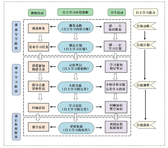 | 教學環節 | 教師活動(引導者、支持者) | 學生活動(主體、自主學習者) | 培養的自主學習能力維度 |