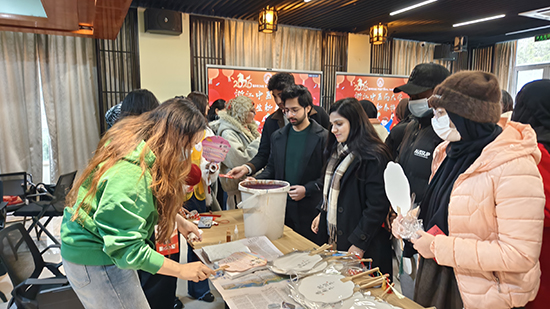 這場新春游園會遠不止是一場文化展示,更成為跨文化理解與交流的生動平臺。來自20多個國家的學生們在體驗中國傳統技藝的同時,也分享著自己國家的文化習俗。“在我的國家,我們也有類似新年的慶祝活動,但這是第一次親身體驗中國新年的傳統文化。”一位來自伊朗的姑娘在完成漆扇制作后,饒有興趣地研究起中國結的編法。