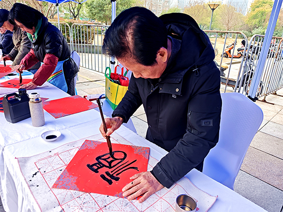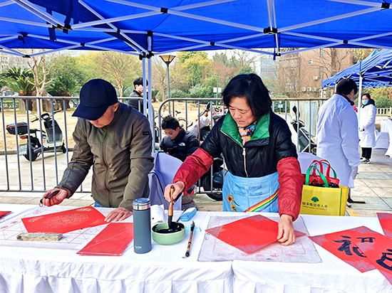 元月26日上午,在望江街道社區學校的資源聯動下,上城區銀發人才文化服務團副團長梁小明,率領書法服務隊5位同學,來到位于望江街道日信國際中心廣場,參加徐家埠社區組織的“臘八送暖,驛路同行”主題公益公益活動。