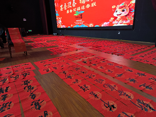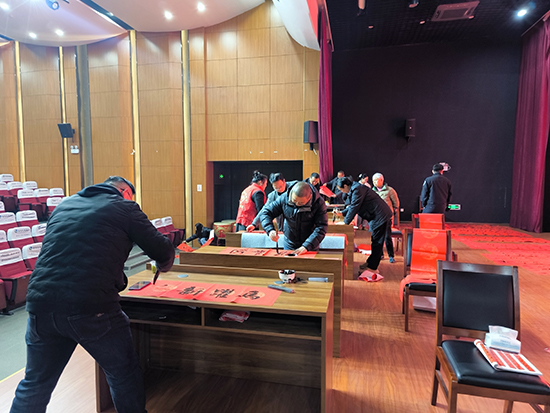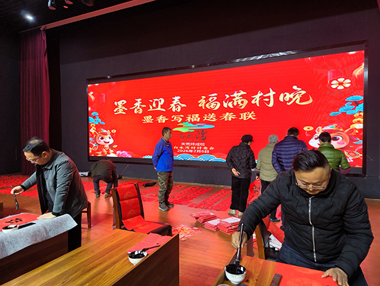 翰墨飄香迎新春,義寫春聯送祝福。2月6日,安吉社區教育學院天荒坪分院(天荒坪成校)聯合天荒坪鎮白水灣村委共同舉辦“墨香寫福送春聯”活動,特邀退休校長李熙庭、兄弟成校校長及老師葉南等6名書畫愛好者現場揮毫,為村民送上滿載年味的文化“年貨”。