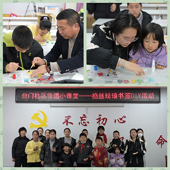 2月7日上午,臺門社區(qū)文化禮堂內(nèi),掐絲琺瑯書簽DIY活動吸引眾多親子家庭參與。非遺志愿者老師講述掐絲琺瑯的歷史淵源與工藝之美,家長與孩子默契配合,以金絲為筆,以釉彩為墨,在專注勾勒與填色間,讓樸素的書簽漸次綻放絢麗光澤。家長們感嘆,活動讓孩子近距離觸摸非遺,更讓陪伴有了溫度;孩子們則欣喜于“原來非遺這么有趣”。