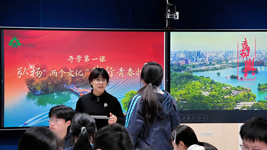3月4日下午,嘉興市秀水中等專業(yè)學(xué)校以“主會(huì)場(chǎng)授課+全校直播”的形式,開(kāi)啟新學(xué)期“開(kāi)學(xué)第一課”。學(xué)院黨委副書(shū)記、副院長(zhǎng),中專校長(zhǎng)陸雅平以“弘揚(yáng)‘兩個(gè)文化’ 踐行青春擔(dān)當(dāng)”為主題帶領(lǐng)全體同學(xué)探尋文化根源,感悟精神力量,完成了一場(chǎng)從文化認(rèn)知到行動(dòng)自覺(jué)的思想之旅。
