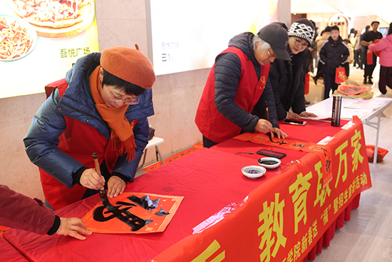 三場活動,三個地點,一份不變的溫情。浙江老年開放大學平湖學院新春送“福”系列活動,累計書寫贈送春聯、“福”字作品近千幅,服務市民、企業職工、在校師生數千人次。這不僅是學院書法教學成果的一次次生動展示與成功轉化,更是學院老年學員實現自我價值、積極服務社會的真情體現。從傳播傳統文化到助力“教育共富”,從服務市民到促進民族團結,老有所學的他們,用行動詮釋了老有所為的時代內涵。