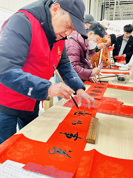 2月10日,師生們的送福腳步來到了鐘埭街道長城汽車平湖分公司的生產車間。作為學院“教育共富”下鄉活動的重要組成部分,學院老年開放大學書法班的師生們將書畫桌案搬到了企業生產一線。活動現場紅紙鋪展,墨香四溢,師生們熱情高漲,揮毫潑墨,筆走龍蛇。一個個蒼勁有力或靈動秀美的“福”字,一副副寓意吉祥、滿載祝愿的春聯躍然紙上。短短時間,三百多幅飽含深情厚誼的春聯和“福”字作品新鮮“出爐”,贈予企業員工。職工們手捧油墨未干、字跡飄香的春聯,臉上洋溢著幸福的笑容,感受到了來自學院的誠摯關懷與新歲祝福。同時,學院招生團隊也將學歷提升的新政策送到企業一線,真正做到了教育服務下沉,助力區域共富。