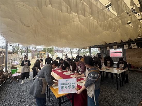 魯家村和南北莊村老年學(xué)堂則將“煙火氣”融入節(jié)日氛圍,組織婦女代表開展糕點制作活動。活動現(xiàn)場,志愿者提前準備好面粉、黃油、糖、餡料等食材,耐心講解糕點的制作步驟、揉面技巧和造型方法。姐妹們熱情高漲,紛紛動手參與,揉面團、搟面皮、包餡料、捏造型,分工協(xié)作、相互請教,指尖翻飛間,一個個形態(tài)可愛、香氣四溢的糕點逐漸成型。大家一邊制作,一邊拉家常,歡聲笑語不斷,空氣中彌漫著糕點的香甜和幸福的氣息,在動手實踐中體驗了勞動的快樂,也收獲了滿滿的成就感。