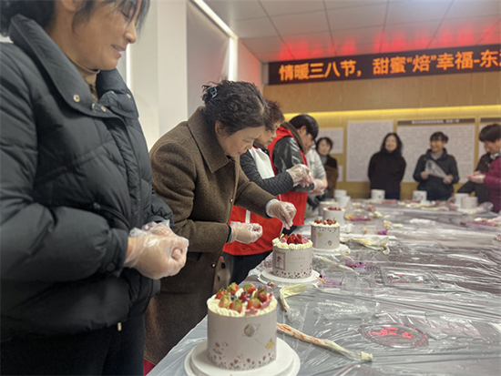 東浜社區(qū)老年學(xué)堂則為女性朋友們準備了一場甜蜜的蛋糕DIY活動,讓大家在創(chuàng)意中感受節(jié)日的喜悅。志愿者詳細講解了蛋糕抹面、裝飾的技巧,姐妹們充分發(fā)揮想象力,用奶油、水果、巧克力等材料,精心裝飾屬于自己的節(jié)日蛋糕,有的勾勒出精致的花紋,有的擺放出可愛的造型,每一個蛋糕都承載著大家對生活的熱愛和對節(jié)日的祝福。制作完成后,大家相互展示、合影留念,分享甜蜜美味,臉上洋溢著幸福的笑容。