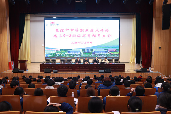 3月11日上午,玉環市中等職業技術學校在大報告廳舉行23級3+2班級學生實習動員大會。會議由項目規劃處負責人劉振興主持,教學分管校長顏申君,教務處、項目規劃處相關人員,23級實習班級班主任以及全體實習學生參加。動員會旨在為即將踏上實習征程的同學們加油鼓勁,明確實習方向與要求,確保實習工作順利開展。