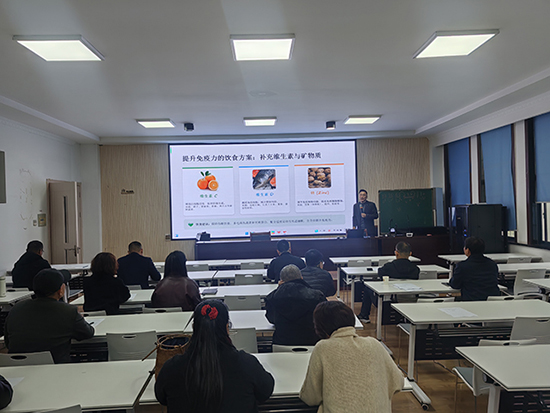 本次培訓特邀安吉縣人民醫院醫生程甜主講,專題授課《中老年人健康管理指南》。程甜醫生立足成校日常教學與服務實際,聚焦老年群體健康核心需求,從三大維度展開系統講解:一是守護免疫力,結合季節特點與老年人生理特征,講解免疫力提升的科學方法與日常養護要點;二是呵護心腦血管,解析高發風險因素、早期識別信號與居家干預技巧;三是關愛骨骼關節,普及骨質疏松防控、科學運動與關節保護實用知識。授課內容兼具專業性與實用性,語言通俗易懂,緊密貼合成校開展老年教育、社區健康服務的工作需要。