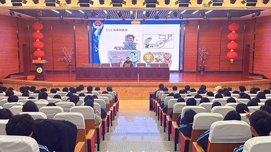 毛警官以“法律是青春最好的護(hù)身符”開篇,用通俗語言闡釋了法律的定義與種類。他指出,法律既是約束行為的底線,更是保護(hù)權(quán)益的盾牌,引導(dǎo)學(xué)生從小事做起、從身邊事做起,將法治精神內(nèi)化于心、外化于行。