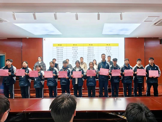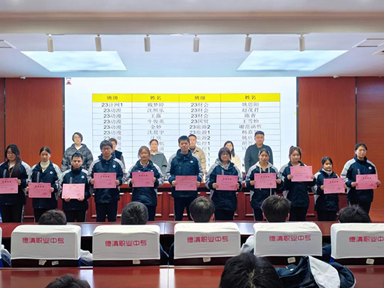 大會(huì)隨后公布第三次聯(lián)合體考試優(yōu)秀學(xué)生名單。本次聯(lián)考嚴(yán)格參照 2025年浙江省高職考本科錄取分?jǐn)?shù)線測(cè)算,全校共有 23 名同學(xué)成績(jī)達(dá)到本科線,涵蓋計(jì)算機(jī)網(wǎng)絡(luò)、財(cái)會(huì)、動(dòng)漫、國(guó)際貿(mào)易、旅游、數(shù)控等多個(gè)熱門(mén)專業(yè),充分展現(xiàn)了學(xué)校高三學(xué)子扎實(shí)的學(xué)業(yè)基礎(chǔ)與強(qiáng)勁的備考實(shí)力。伴隨著熱烈的掌聲,學(xué)校領(lǐng)導(dǎo)為獲獎(jiǎng)同學(xué)頒發(fā)榮譽(yù)證書(shū),同時(shí)激勵(lì)全體高三學(xué)子以優(yōu)秀為榜樣,以?shī)^斗為階梯,在最后沖刺階段奮起直追、勇攀高峰。