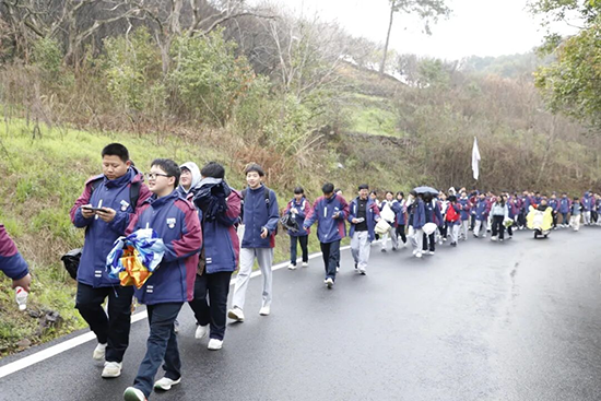 清晨,沃洲校區(qū)的學(xué)子們整裝待發(fā),臉上洋溢著期待與昂揚(yáng)的朝氣。在帶隊(duì)領(lǐng)導(dǎo)的統(tǒng)籌部署下,在班主任及處室成員的全程護(hù)航下,學(xué)子們有序出發(fā),沿著“沃洲校區(qū)→真君殿→外赤坑村→西塢坑村→高來村→沃洲校區(qū)”的既定路線,向著山野深處前行,開啟了一場與春天、與自我、與團(tuán)隊(duì)的深度對(duì)話。