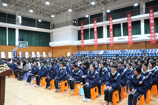 3月23日下午,杭州市臨平商貿職業高級中學2026屆高三高考誓師大會暨理論高考沖刺動員會在學校體育館隆重舉行。校領導班子成員、各專業部負責人及高三年級全體師生齊聚一堂,以昂揚姿態吹響高考沖刺的號角,為即將奔赴考場的學子們壯行助威。