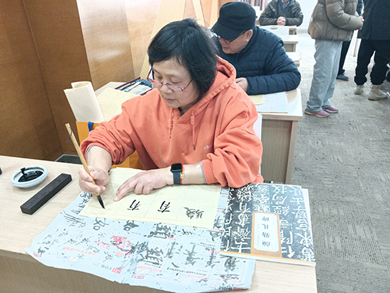 同期開班的書法班墨韻飄香、氛圍濃厚。本次課程以楷書為核心,選取唐代書法家顏真卿經(jīng)典名作《顏勤禮碑》為學(xué)習(xí)范本,字體端莊大氣、適合入門研習(xí)。社區(qū)特邀資深書法教師葛華老師授課,葛老師擁有多年老年書法教學(xué)經(jīng)驗(yàn),教學(xué)方式通俗易懂、因材施教。開班第一課,葛老師先全面了解學(xué)員書法基礎(chǔ),開展分層教學(xué);再現(xiàn)場(chǎng)示范運(yùn)筆、發(fā)力、結(jié)構(gòu)布局等關(guān)鍵技巧,細(xì)致點(diǎn)評(píng)學(xué)員作品,幫助大家快速掌握書寫要領(lǐng)。零基礎(chǔ)學(xué)員逐步入門,有基礎(chǔ)的學(xué)員技藝得到提升,大家靜心提筆、認(rèn)真臨摹,在筆墨揮灑間感受中華優(yōu)秀傳統(tǒng)文化魅力。