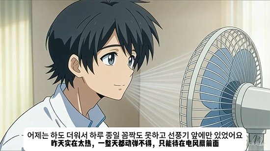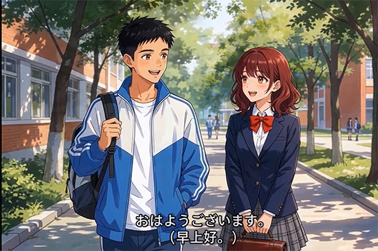 活動以AI賦能教學視頻展示拉開帷幕。教師們運用AIGC工具將教材中的靜態語篇轉化為生動的視聽素材:日語動畫《私の趣味》《學校案內》《朝のスケジュール》通過AI視頻生成技術,將興趣愛好介紹、校園導覽等內容打造為沉浸式學習場景;韓語《????》則以動態天氣預報場景為載體,讓天氣表達在真實語境中自然呈現。