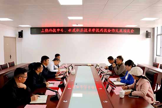 27日,走訪組到了位于中國稻都——江西萬年的上饒科技中等專業學校。走訪組在上饒科技中專賴志華副校長的帶領下參觀了優美的校園,探訪了專業實訓基地。隨后雙方舉行座談。上饒科技中專黨委書記呂軍、副校長賴志華和教務處、學工處、招就處等領導參加了座談。雙方互相介紹了近幾年的發展進步和特色辦學經驗,回顧總結了2023年—2024年“永康智能制造班”赴永康學習實訓就業的經驗和教訓,并探討進一步加強學生選派、教師交流互訪和專業共建等合作事項。