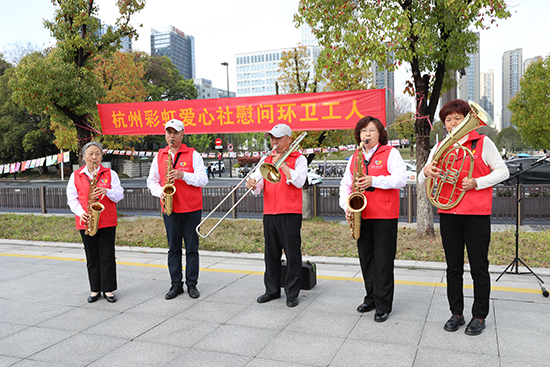 這位頭發(fā)花白、身形清瘦的老人,杭州市濱江區(qū)浦沿街道彩虹社區(qū)愛心社的創(chuàng)始人,是一名有著50多年黨齡的退役老兵也是社區(qū)的二級(jí)黨支部書記。今天,他和他創(chuàng)辦的愛心社,要為常年堅(jiān)守一線的環(huán)衛(wèi)工人送上一份延續(xù)了十余年的溫暖約定。