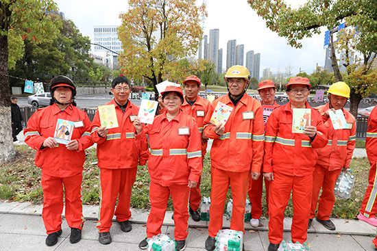 活動(dòng)現(xiàn)場(chǎng),一份特殊的禮物格外引人注目——那是錢塘實(shí)驗(yàn)小學(xué)的孩子們親手制作的慰問卡。雖然孩子們未能親臨現(xiàn)場(chǎng),但他們的心意通過社區(qū)工作人員的手,一份份送到了環(huán)衛(wèi)工人手中。卡片上寫滿了稚嫩卻真摯的祝福:“叔叔阿姨辛苦了!”“謝謝您讓我們的城市這么美麗!”