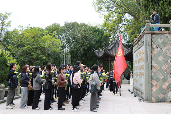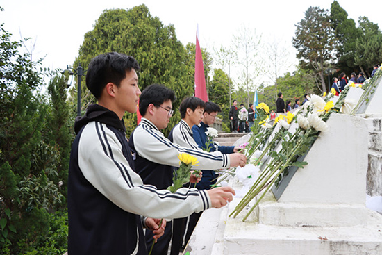當天下午,師生們整齊列隊,懷著無比崇敬的心情步入莊嚴肅穆的烈士陵園。