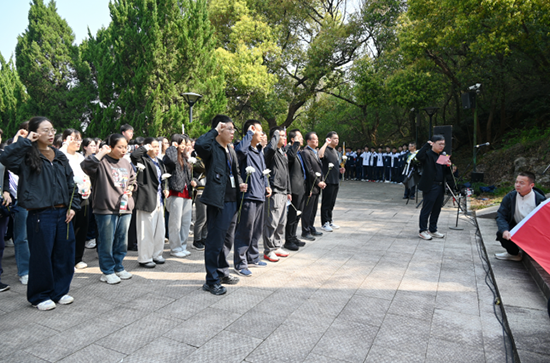 最后,校黨委書記朱曉明在烈士紀念碑前深情寄語全體學子。海寧這片浸潤英雄熱血的土地,孕育了無數仁人志士,他們用生命守護家園,用熱血鑄就精神豐碑。希望同學們銘記先烈遺志,厚植愛黨愛國愛家鄉的情懷,把緬懷與熱愛轉化為勤學苦讀的實際行動,要接過先輩接力棒,立大志、明大德、成大才、擔大任,緊密結合海寧時尚產業等優勢領域潛心鉆研,努力成長為建設家鄉的高素質技能人才,以青春之我為海寧高質量發展貢獻力量。