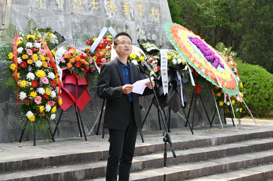 學生代表發言:“今天我們站在這里,緬懷他們,感念他們,表達敬意,就要學習和繼承革命先烈不畏危險勇于奉獻的精神,珍惜美好的時光,勤奮學習,為祖國貢獻青春的智慧和力量。”