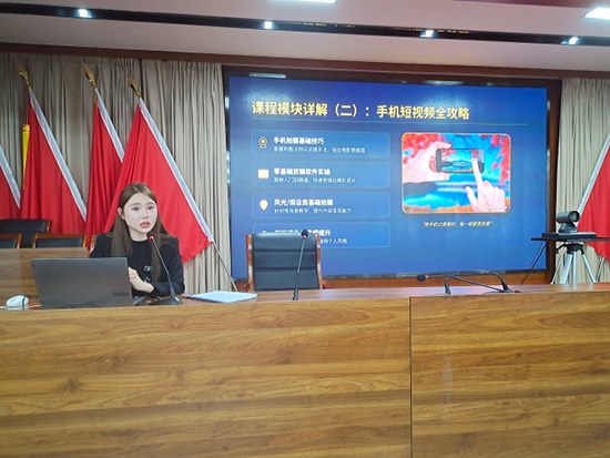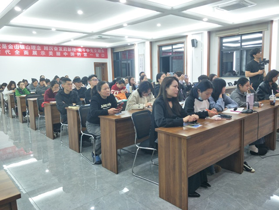 該培訓由安吉縣天荒坪鎮黨委委員王怡君主持并作開班動員,接著由邀請到的浙江省文投集團派駐余村文化特派員陳晨作了熱情洋溢的致辭,接著開展了2場專項培訓講座。一是由湖州鎏鑫文化傳媒有限公司總經理胡文文為各位學員作了《項目整體情況綜述》(含培訓內容、課程、方式等)主旨介紹,她從自己創業經歷講起,結合個人IP打造等給大家作了科學理性的分析,還特別就報名學員中已有創作的高點擊率短視頻等作了有益的探討,并提出本次培訓班的學員要以“天荒坪文旅達人”為前提進行個人IP打造等;二是由湖州鎏鑫文化傳媒有限公司專業人員陳祥為大家作了《短視頻剪輯》的專業講座。整個開班動員過程氛圍濃厚,大家認真聽,用心做著筆記并適時拿起手機操作。