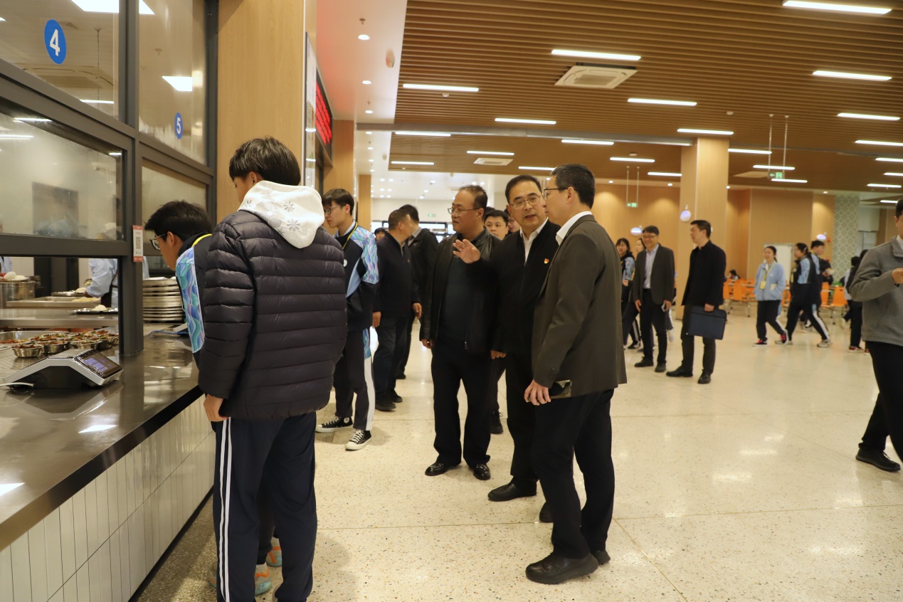 調研最后,徐巖副市長一行來到學校食堂,實地了解校園餐食搭配、營養保障及食品安全管理制度。徐巖副市長強調,校園食品安全關系到廣大師生的身體健康和生命安全,要時刻繃緊安全這根弦,嚴格落實各項管理制度,確保師生吃得安心、吃得健康。