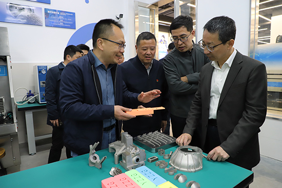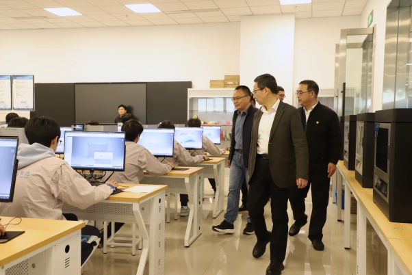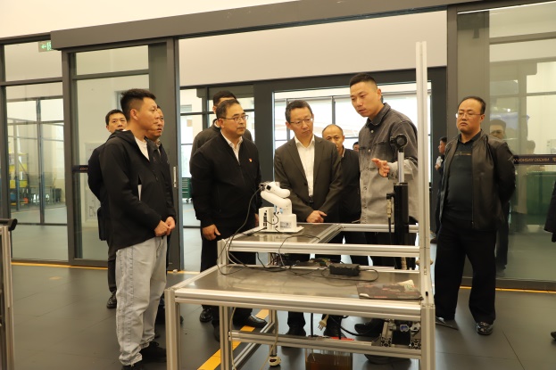 接下來,徐巖副市長一行前往1號實訓樓,調研智能制造專業群和交通運維專業群。徐巖副市長參觀了工業機器人、增材制造、新能源汽車、智能交通等實訓場地,詳細了解校企協同育人模式,對學校堅持“崗課賽證”融合、立足服務地方產業發展、推動教育鏈與產業鏈有機銜接等舉措給予肯定。