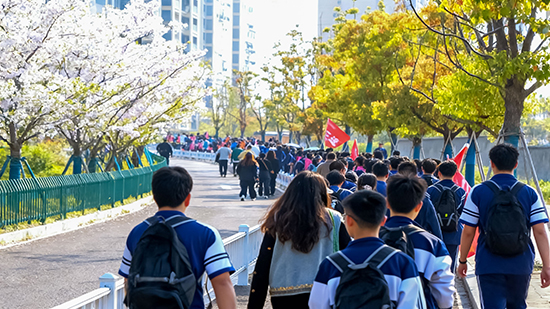 從校園到臨平山,12公里的征途,不僅是對體魄的考驗,更是對意志的磨礪。行進途中,師生們相互照應、彼此鼓勵,沒有一人掉隊。大家在行走中磨煉堅韌意志,將“健康第一”的理念落到實處,讓“弘喬思政學堂”的育人內涵在每一步腳下生根發芽。