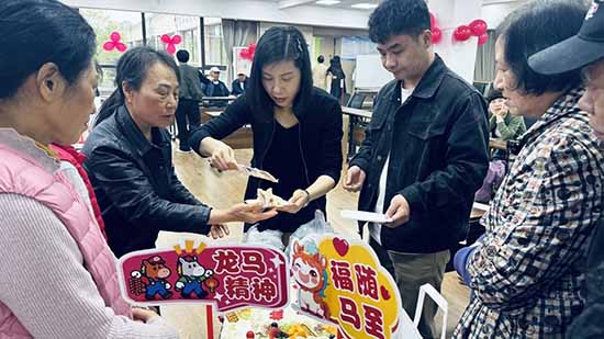 伴隨著《生日快樂》歌的旋律,老壽星們戴上生日帽,圍坐一堂,共同點亮蠟燭、許下心愿、吹熄燭火,工作人員為老人們佩戴生日帽、端上香甜的生日蛋糕,大家齊唱生日歌,歡聲笑語縈繞現場。在祝福聲中,老人們許下心愿,共享甜蜜時刻,臉上洋溢著幸福的笑容。接著,社區工作人員切分蛋糕,將甜蜜與祝福送到每位老人手中,這種充滿儀式感的環節,讓老人們感受到被重視與關懷的喜悅‌。