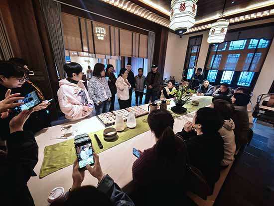 乘船橫渡甌江,學(xué)員們來到對岸的“畫鄉(xiāng)”。這里藝術(shù)氣息濃厚,民宿與畫廊、手作坊、茶空間共生共融。一位學(xué)員感嘆:“這才是‘民宿+’的樣子,我們富陽也有山水,也可以做出這樣的調(diào)性。”
