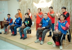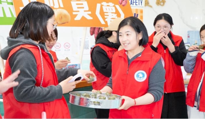 “聽‘筧’星聲”公益音樂會環節更是溫情滿滿。向陽樂隊奏響暖心旋律,工療員們勇敢登臺展示才藝。志愿者老師現場開展非洲鼓演奏指導,動人的鼓聲既能愉悅心情,還能刺激手部血液循環,助力身心療愈。這場專屬特殊群體的才藝展示,不僅讓他們收獲掌聲與肯定,更在舞臺上綻放自信光芒,充分體現社會對殘疾人的尊重、關愛與支持?;顒幼詈?,東港社區的東鄰嫂與益筧藍軍嫂,將親手制作的腌菜與新鮮青團送到現場的工療員手中,為他們的春日餐桌添上了一份“媽媽的味道”。