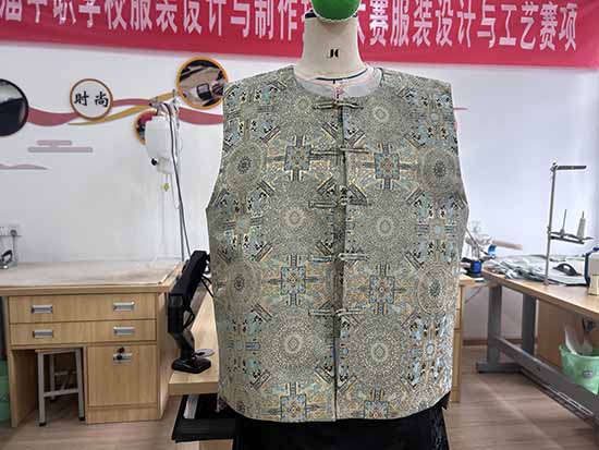 當一件件融合東方美學與現代工藝的粉藍雙色中式馬甲成品呈現時,同學們的成就感溢于言表。這些馬甲不僅是專業課程的作業成果,更是傳統文化與職業教育碰撞的結晶。滿繡精致花紋下,承載著同學們對傳統文化的敬畏與熱愛;雙面設計的巧思,展現了專業創新能力;針針細密的縫線,沉淀著日復一日的匠心堅守。